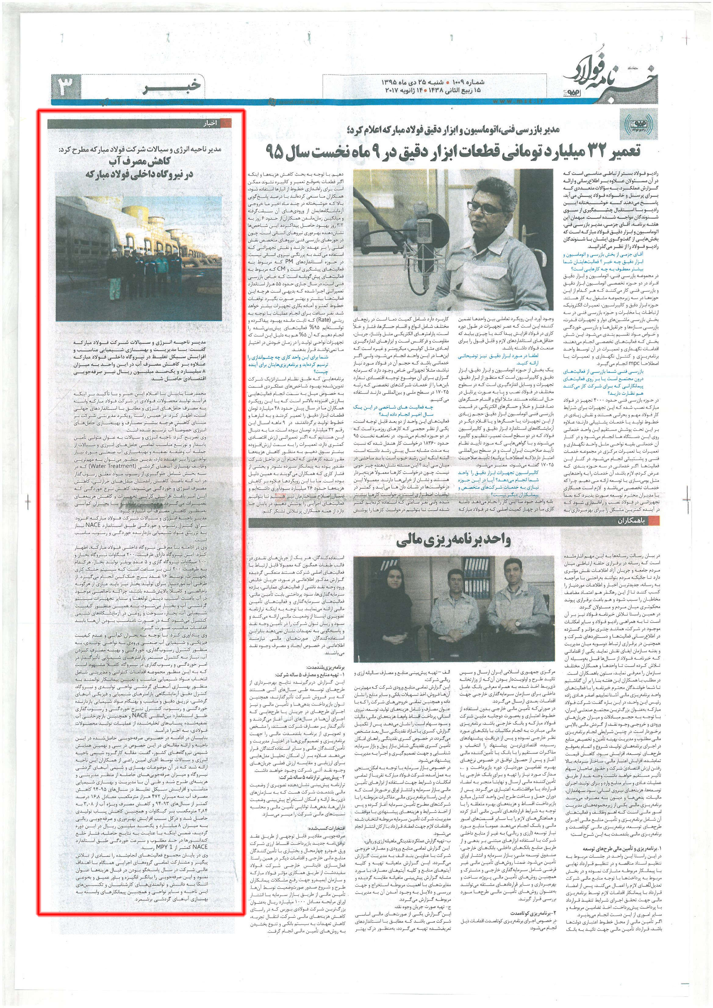 - صرفه جویی در مصرف آب به میزان ۱.۵ میلیون متر مکعب در منطقه اصفهان با افزایش پارامتر هدایت الکتریکی در حد ۱۲۰۰۰µs/cm و در نهایت افزایش سیکل تغلیظ و کسب نتایج خوردگی کمتر از ۱.۵MPY بدون رسوب گذاری.